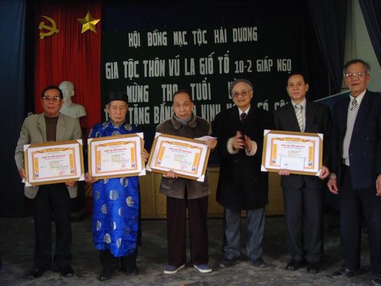Năm nay chi họ trao Giấy mừng thọ của HĐMT Hải Dương cho hai cụ bà 80 tuổi và Bằng khen của HĐMT Hải Dương cho 04 thành viên có nhiều công sức đóng góp cho Mạc tôc.