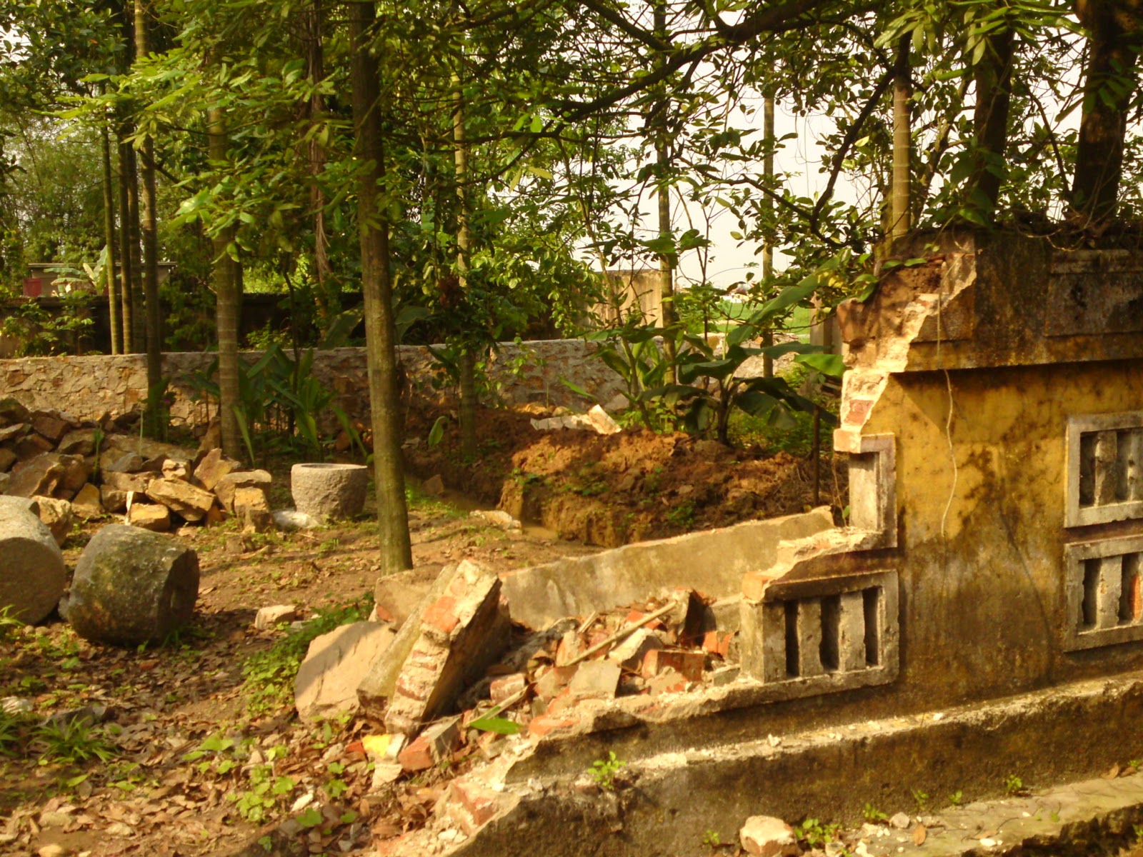 Một số ảnh về lễ động thổ phá hoại phong cảnh, chuẩn bị phá chùa Trà Phương. Một số người muốn phá chùa cổ để xây mới về phía Đông, hướng Nam và Tây đã xây tường đá cao.