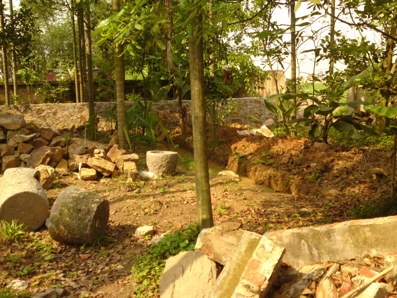 Chùa Trà xung quanh xưa là tre, duối, ràng ràng, vối … bao quanh như bảo tàng thực vật cổ. nay tường đá xây cao gần 3m dân nói như tường nhà gi…lạnh ….ai dám đưa ra kiến trúc này? Họ không sợ ai cả…