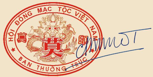 T/M HỘI ĐỒNG MẠC TỘC VIỆT NAM CHỦ TỊCH